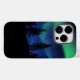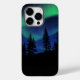 Esta bela caixa aurora borealis apresenta uma floresta esbatida com luzes vibrantes de norte ao fundo.