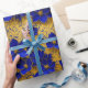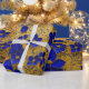 Belo padrão floral para papel de embrulho de presente em imagens repetitivas internacionais Klein Blue e douradas.