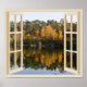 Autumn Lake refletindo as janelas laranja e verde Fall Trees... A visão do seu quarto parece maior. Uma cena natural impressionante que dá uma ilusão de profundidade para aumentar o tamanho do Excelente da sala para qualquer local de residência ou escritório. Belo Poster de Frame de Janela Falsa do Lago Autumn