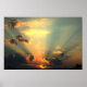 Um pôr do sol bonito e colorido. O Sol está atrás das nuvens e os raios de luz estão por perto