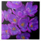 Azulejo cerâmico que mostra uma foto de lindas, roxas, flores primavera Crocus, colocadas contra um fundo preto contrastante. Um design floral impressionante! Selecione o tamanho do seu azulejo. Faz uma trivet de cozinha excelente!