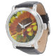 Belo relógio de girassol laranja e amarelo