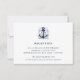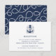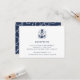 Cartão de enclausuramento de recepção em estilo costeiro apresenta os detalhes da sua recepção de casamento em azul-marinho, acentuado com uma ilustração de uma âncora de navio desenhada à mão com suas iniciais aninhadas dentro. O verso dos cartões é um padrão de corda náutica em branco sobre azul-marinho. Projetado para combinar com nossa coleção de convites de casamento Bem Ancorado.