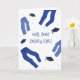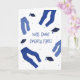 Bem feito, calças espertas! Dê parabéns a um formando recente em sua vida com este cartão de graduação engraçado. O design azul e branco apresenta uma tipografia divertida e ilustrações de jean e boné de formatura denim.
