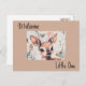 Bem-vindos a uma nova chegada precioso com este adorável cartão-postal de bebê com tema famoso. Apresentando uma doce ilustração de um veado bebê e a sentida mensagem "Bem-vindo Pequeno Um", este charmoso cartão de bebê é perfeito para chás de fraldas, presentes recém-nascidos e novos parabéns para bebês. Celebre a alegria de novos começos com este cartão de bebê mimetizado e inspirado na natureza. Projetado por Best Baby Gifts - dado com amor.