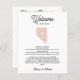 Uma das melhores maneiras de fazer seus convidados fora da cidade se sentirem especiais é uma carta de boas-vindas de casamento incluída em seus presentes de boas-vindas. Compartilhe uma mensagem de boas-vindas para seus convidados de casamento NEVADA, bem como um itinerário ou agenda dos eventos do fim de semana. Frente mostra sua mensagem de boas-vindas com um mapa da silhueta do estado de NEVADA com um dentro de coração. A combinação de tipos cursivos e serif contemporâneos torna este programa realmente excepcional. Todo estilo de texto, cores, tamanhos também podem ser modificados para ajustado das suas necessidades. ESTADO E COR DO CORAÇÃO SÃO EDITÁVEIS! Para obter ajuda ou solicitação personalizada (sem encargos), entre em contato conosco em citronelladesign@gmail.com ou visite nossa loja