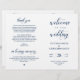 Este é o cartão do programa de cerimônia de núpcias dobrável, no tema do roteiro da elegância Azul Marinho. Ele foi projetado com sotaque de rolagem que pode ser personalizado com texto personalizado/ personalizado para seu partido noiva, detalhes da cerimônia, notas memoriais e mensagem de obrigado. ** Nota: esses programas de papel de peso de texto chegam em formato plano e exigem a dobragem para montagem.