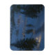 Nesta cena fantasiosa de uma noite de inverno, um caminho gelado leva entre derivas de neve pela colina e pelo rio até uma cabana acolhedora com velas na janela. A trilha e as pedras do outro lado da água são iluminadas por lanternas brilhantes, e uma fogueira ao lado do caminho envia faíscas para o ar frio da noite.