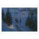 Nesta cena fantasiosa de uma noite de inverno, um caminho gelado leva entre derivas de neve pela colina e pelo rio até uma cabana acolhedora com velas na janela. A trilha e as pedras do outro lado da água são iluminadas por lanternas brilhantes, e uma fogueira ao lado do caminho envia faíscas para o ar frio da noite.