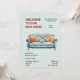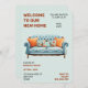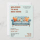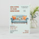 Celebre sua nova casa com estilo! Nosso encantador convite de festas de lar apresenta uma imagem acolhedora de um sofá azul claro adornado com travesseiros decorativos marrom-claro. Perfeito por convidar amigos e família para compartilhar sua alegria enquanto você se instala em seu novo espaço. Personalize seus detalhes e torne seu evento inesquecível com este design de convite!