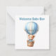 Bonito Urso de Teddy num Cartaz de Balão de Ar Quente. Bem-vindo ao novo menino. Cartão de anúncio de nascimento.