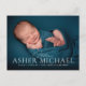 Anúncio de nascimento. Anúncio do bebê. Garotinho. Menina, neutra em gênero. Foto. Olá. Olá, Bebê. Negrito. Moderno. Contemporâneo. Azul. Cartão Postal.