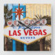 Relógio de Parede Acrílico Quadrado com uma imagem aproximada do Sinal de boas-vindas a Las Vegas Fabuloso com o ouro Mandalay Bay em segundo plano