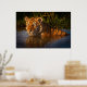 Um Tigre Bengala a ver-te da água. Ele está à espera no ombro que a água profunda resfrie à procura de janto