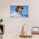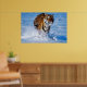 Apresentando um fôlego tendo em vista uma corrida de Tigre BengalaIng na bela água azul do oceano com manchas de água por todo o lado. esta é uma bela foto nesta poster