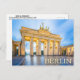 Este belo cartão postal de Berlim retrata a Porta de Brandeburgo. A Porta de Brandeburgo desempenhou um papel crítico na história mundial desde a ocupação de Berlim por Napoleão, passando pela Primeira e Segunda Guerra Mundial, e durante a separação e reunificação da Alemanha.