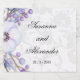 Este bonito rótulo de vinho úmido tem um buquê roxo e azul colorido de bagas numa face. Por baixo do texto personalizado com os nomes da noiva e do noivo e a data do casamento, há uma cor damasco elegante em cinzas suaves.