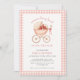 Celebre uma doce chegada com este charmoso convite para o chá de fraldas "Alguém que Berry Amou"! Apresentando uma ilustração romântica da aquarela de uma carruagem de bebê rosa pincelada vintage que transborda com morangos e minúsculas flores brancas, esta design é perfeita para um chá de fraldas temático de bagas ou uma celebração inspirada em coquetes. Comparado com uma borda de gingham cor-de-rosa suave, o convite captura a essência do cottagecore e do estilo de safra feminina, fazer ideal para chás de primavera ou de verão. Personalize com o nome, os detalhes do evento e as informações de RSVP usando o modelo fácil de editar. Quer você esteja hospedando uma reunião em um café local, jardim ou casa, este doce e caprichoso design dá o tom perfeito para um dia memorável.