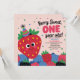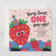 "Celebre o seu primeiro aniversário com este adorável convite de morango. Com um morango sorridente e bagas vibrantes, este design lúdico é perfeito para uma festa de aniversário doce e memorável. Personalize com seus detalhes de eventos e torne o grande dia do seu filho especial.