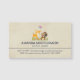 Cartões de visitas magnéticas com uma ilustração fofinha, com veados bebês e um pequeno esquilo segurando uma bolota e uma borboleta voando sobre suas cabeças. Estas adoráveis criaturas de floresta em pé sobre uma grama com alguns cogumelos brancos perto de seus pés. Fundo é uma imagem de pergaminho/papel kraft, falso não real.