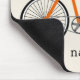 Um mousepad que caracteriza uma ilustração de uma bicicleta alaranjada.