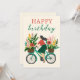 Bicicleta Marinha com Flores Feliz Aniversário