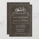 Convites rústicos do casamento do Madeira-olhar. Bicicleta em tandem construída para 2 com os ornamento encaracolado do vintage e o quadro do rolo. A tipografia retro escrita à mão ocasional do giz faz perfeito para casamentos rústicos da propriedade da fazenda ou do país, mas com algumas mudanças você pode criar uma aparência totalmente diferente apropriada para casamentos tradicionais ou modernos com um toque de encanto sofisticado para os noivos contemporâneos. O modelo versátil fácil de usar pode ser alterado para casamentos formais ou semi-formais. O clique personaliza-o para mudar o tipo estilo, cores, e tamanho das pias batismais. Contacte-nos por favor para a ajuda com personalização, ou se você precisa a sala adicional para seus detalhes do casamento.