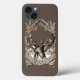 Uma bela e majestosa pedra com um impressionante conjunto de galhadas cercado por uma coroa de folhas e bolotas. caixa de celular excelente para o caçador de veados ávido.