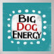 "Big Dog Energy" é um design de texto fofo em azul com texto preto e vermelho, junto com uma forma de sotaque branca e pontos brancos texturizados ao seu redor.