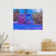 Um grande Caminhão de Transporte Pecuário-azul roxo balança ao redor de uma esquina em uma autoestrada alinhada por árvores. O poster perfeito para quem ama caminhões e dirige. Criado pelo nosso amigo artista Skye, em zazzle.com/ravenspiritprints. Podemos fazer tamanhos diferentes se você pedir posters maiores ou menores ou podemos colocar essa imagem em outros produtos se for solicitado. Sem problemas!