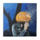Um azulejo de Halloween assustador, com o trabalho de arte pastel, "The Headless Biker". Esta ilustração apresenta um fantasma de cabeça de abóbora vestindo uma jaqueta de couro fumando um cigarro numa noite escura e fria de outubro. Arte original: Pastéis em papel. Copyright Dominic A. White. Todos os direitos reservados.