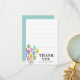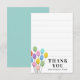 Perfeito para um jovem escritor infantil, este cartão de agradecimento plano e pequeno tem linhas sutis para ajudar novos escritores a manterem suas linhas retas e lhes dá espaço para escrever uma simples mensagem de agradecimento pelos presentes recebidos após a celebração de seu aniversário. Lindos balões de aniversário pastéis adicionam à diversão.