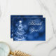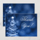 Elegante design de "País das Maravilhas de Inverno" para bilhete de agradecimento de casamento com árvore de Natal cintilante em prata e azul, nomes personalizados e data. Impressione sua família e amigos com este design moderno e sofisticado. Totalmente personalizável! Fácil de usar e personalizar.