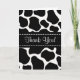 Bilhete de agradecimento com manchas de vaca pretas e brancas e as palavras obrigado. Adicione seu nome para um toque pessoal. Use a mensagem sugerida ou adicione sua mensagem especial dentro..