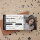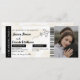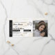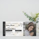 Passagem moderna para o casamento com um simples pano de fundo branco e castanho, um retrato do casal noivo, um avião com trilha de loop, e um modelo de convite personalizado para casamento fácil de personalizar. Não se esqueça de mudar o texto na parte de trás do monograma.
