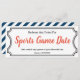 Bilhete de Data IOU do jogo desportivo
