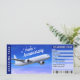 Personalize instantaneamente as suas passagens de embarque de avião no aniversário de surpresa hoje! Basta clicar em "Personalizar" para personalizar o tíquete com suas informações. Comemore uma ocasião especial digitando uma nota especial na caixa de anotações do tíquete. A parte de trás do tíquete contém ícones bonitos de viagem. Cada bilhete é impresso em estoque grosso, resistente, com cartão de qualidade e envelope branco.