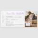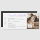 Cartão de imã salve a data de embarque do logotipo roxo de avião em orquídea lilac para um tema ou casamento de destino, com foto e texto personalizado. Os detalhes de tíquete retrorreflector de aparência autêntica incluem pequenas setas, código de bar e caixa para uma atribuição de assentos em uma fonte de computador vintage. Os casamentos de destino exigem enviar aos convidados todas as informações de alojamento antes de um casamento local. Clique em "personalizar mais" para editar a cor do sotaque para corresponder ao seu esquema de casamento. Destinos de Uvas de Papel no Zazzle são especializados em convites para temas de viagem e artigos de papelaria para o casal aventureiro e de luxo que planeja suas núpcias no exterior.