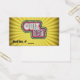 Bilhete da festa de teste à noite. Com tipografia grande e ousada cercada por luzes de camarim. O fundo é um padrão amarelo de explosão solar.