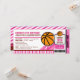 É uma festa de merda! Celebre seu aniversário com nosso Convite de festas de basquete de cor rosa. Este convite para ingresso de basquete apresenta uma bola de basquete numa modelo de ingresso de basquete. Jogue sua pequena estrela nba uma festa de aniversário temática desportiva memorável com este convite de aniversário de basquete. Perfeito para a festa de basquete de rua, festa de aniversário de Nba, basquete, todas as festas de aniversário de estrelas.