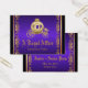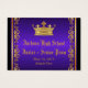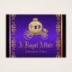 Bilhetes de admissão para o baile roxo e dourado com uma elegante carruagem real dourada e coroa dourada em um fundo rico em redemoinho roxo e dourado. Você pode alterar a cor do fundo e escolher o estilo e a cor da fonte que preferir. Este lindo bilhete de admissão roxo e dourado é facilmente personalizado para o seu evento, bastando adicionar os seus detalhes.