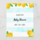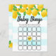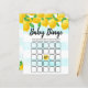 Estas cartas de bingo são perfeitas para qualquer um que tenha um chá de fraldas este ano. O design apresenta limões amarelos brilhantes em uma turquesa bonito e fundo de aquarela listrada branca e uma formulação de modelo fácil de personalizar. Basta incluir esses cartões de bingo quando você enviar seus convites de chuveiros de bebê correspondentes, seus hóspedes podem então preencher cada quadrado com qualquer presente que eles pensam que o bebê receberá no chá, cinco em qualquer direção ganham um prêmio!