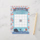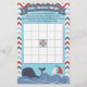 Este lindo jogo de bingo chá de fraldas tem um tema de praia náutica com vários motivos, incluindo âncoras, baleias e veleiro. A borda é um cromo vermelho, branco, azul e cinza. O topo tem uma faixa azul que diz Chá de fraldas Bingo. O centro tem um preservador de vida que diz "quadrado livre". As instruções dizem: "Preencha as praças com os presentes que você acha que a futura mãe receberá. À medida que os presentes são abertos, marque qualquer jogo no seu cartão de bingo. Quando você recebe 5 em linha (horizontal, vertical ou diagonal) grita Bingo!"