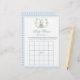 Um jogo clássico sofisticado de "Bingo" desenhado para um chá de bebês, adorado com um belo coelho rodeado por flores azuis e padrões de gingham. Envolva seus hóspedes com este jogo delicioso, perfeito para adicionar diversão e entusiasmo à sua celebração enquanto cria memórias queridas.