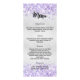 Programa de festa de aniversário na frente e o menu na parte traseira. Personalize e adicione um nome, idade, data, programa na frente e um menu no verso. Um fundo na moda faux prateado, decorado com confete violeta. Letras pretas coloridas.