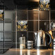 Beautiful shiny black and gold geometric shapes elegant , art deco, art nouveau tile with a geometric and gold palm leaves on each side.