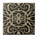 This ceramic tile features a stunning Art Deco-inspired design with intricate gold patterns set against a deep black background. The symmetrical decoration showcases elegant, swirling lines that form floral and organic motifs, radiating from a central flower-like emblem. The gold detailing is highly refined, creating a luxurious and timeless aesthetic. Perfect for enhancing walls, floors, or decorative panels with a touch of vintage sophistication.