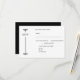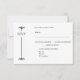 Ornamental black flourishes frame the top and bottom on the left, adding a formal touch that complements the minimalist design. The right side holds the details of the RSVP. The overall aesthetic is clean and timeless, ideal for a traditional or upscale celebration. The structured spacing and monochrome palette enhance readability and elegance. Personalize with your own information.