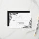 This wedding RSVP card features a timeless black-and-white design with elegant botanical line art framing the corners, creating a refined and romantic look. A classic serif “RSVP” heading sits at the top, followed by a clear response-by date, with ample space for guests to write their names and indicate whether they will accept with pleasure or decline with regrets, along with the number attending. The clean layout and delicate foliage details give the card a formal, understated charm well suited to traditional, classic, or botanical-themed weddings. Personalize with your own information.