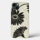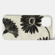 © Daphne Brissonnet / Wild Apple. Three flowers in full bloom, in black and white. The image has a floral patterned background in an off white shade and black on the left side.
